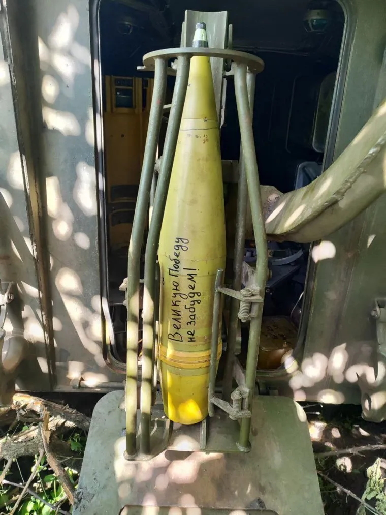 «Великую Победу не забудем», — гласит надпись на снаряде