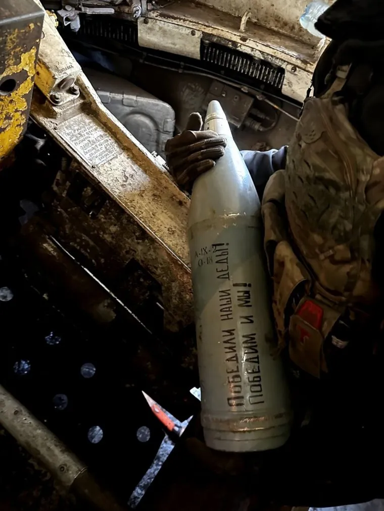 «Победили наши деды! Победим и мы!» — написано на другом снаряде