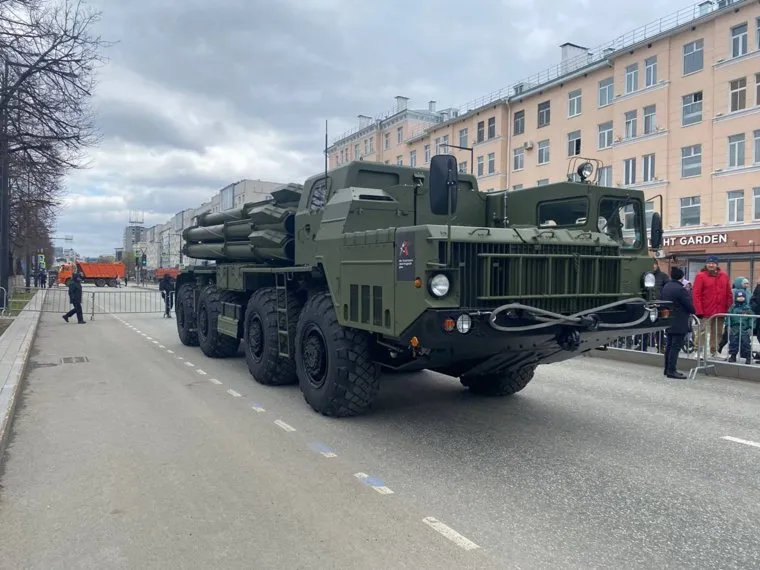 «Шесть боевых машин сразу после Парада на Октябрьской площади отправились на ул. Ленина, рядом с Театром-Театром. Там посмотреть на них могут все жители города. Эта выпущенная „Мотовилихинскими заводами“ техника готова в отправке в воинские части, в том числе на СВО. Во время осмотра экспозиции Махонин подошел к РСЗО „Град“ и примерил на себя роль наводчика, покрутив одну из деталей машины», — отметил корреспондент.
