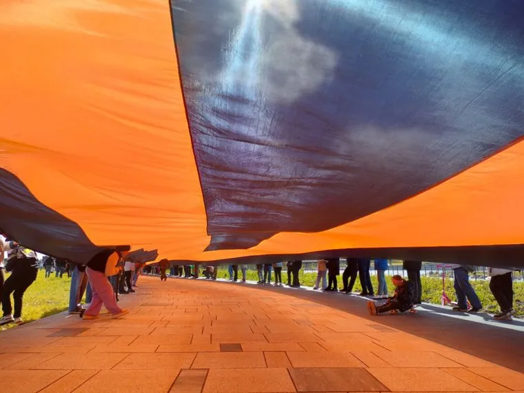 «Рекорд специалистами „Книги рекордов России“ зафиксирован! Результат объявят позже», — сообщает корреспондент URA.RU. Предполагалось, что в Магнитогорске растянут ленту длинною 600 метров. Кстати, сшили ее местные мастерицы.