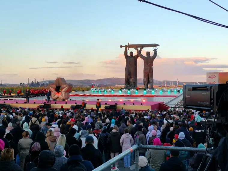 «Дорогие магнитогорцы, от всей души поздравляю с Днем Победы! Здесь в легендарной Магнитке ковался меч Победы. Мы находимся сейчас рядом с грандиозным монументом «Тыл-Фронту. Это подтверждение того, что мы — великий народ и великая страна», — поздравил магнитогорцев губернатор. Вместе с ним на сцену поднялся мэр Магнитогорска Сергей Бердников.