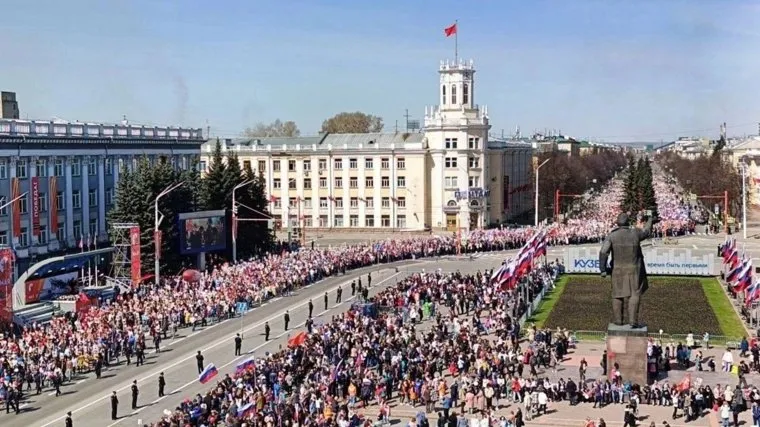 Колона «Бессмертного полка» в Кемерово традиционно растянулась на несколько километров.