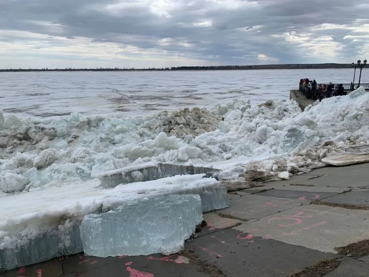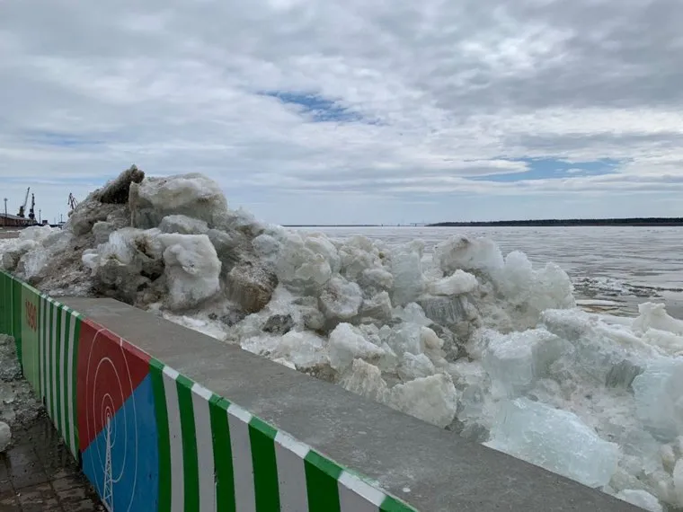 В Сургуте ограждения набережной пострадали из-за ледохода на Оби. Фото, видео