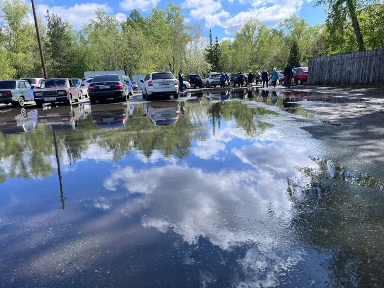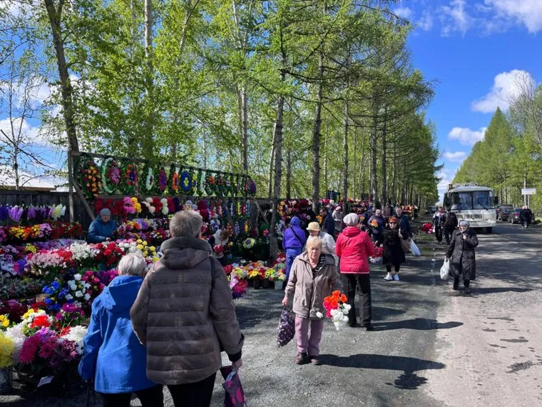 На новом кладбище большие лужи и много машин. Автобус останавливается возле «цветочного рынка», чтобы не высаживать пассажиров в воде. Искусственные цветы продают по цене от 100 до 1 000 рублей. На подъезде к кладбищу стоит пост ГАИ. Они контролируют поток людей и машин, дают рекомендации, как обойти лужи и куда поставить автомобили. Перед входом на кладбище пока не так много людей, лужи обходят по узкой тропинке. Горожане выражают недовольства, мол, столько лет стоит кладбище, а дорогу не могут асфальтировать. С кладбища также не вывезли мусор к Родительскому дню. Несколько деревьев срублены, над несколькими могилами дерево и вовсе надломилось и повисло. Вдоль дорог лежат десятки больших пакетов, кресты и ветки. Горожане опасаются — это все легковоспламеняемое.