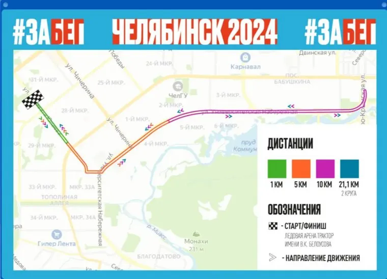 В Челябинске состоится уличный беговой полумарафон. Карта