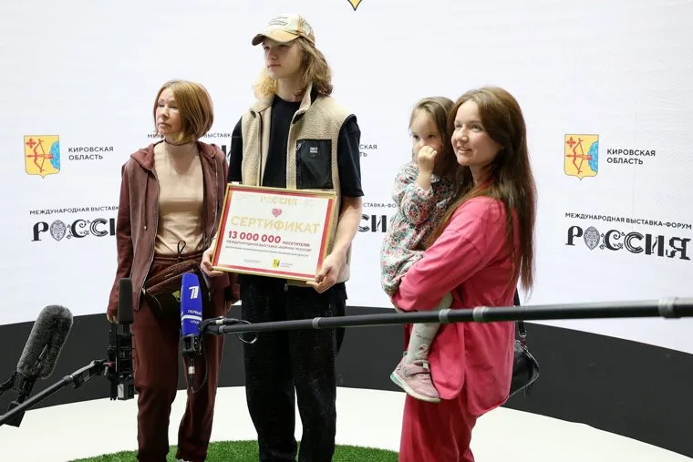 Международную выставку «Россия» на ВДНХ 16 мая посетила уроженка Сургута Татьяна Ясюкович, ставшая 13-миллионым посетителем. Женщине и ее семье подарили двухдневный тур по Кирову и Кировской области, сообщили в правительстве региона.