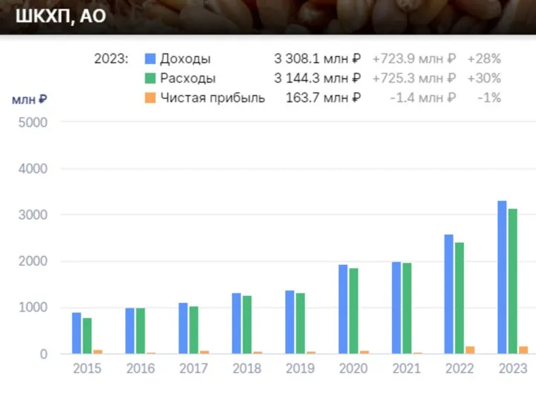 «Выручка АО «Шадринский КХП» за 2023 год: 3,3 млрд рублей. Увеличение на 724 млн рублей (+28%). Чистая прибыль: 164 млн рублей (-1%). Это на 1,4 млн меньше, чем в предыдущем периоде», — указано в бухгалтерской отчетности предприятия, опубликованной на сервисе СБИС.