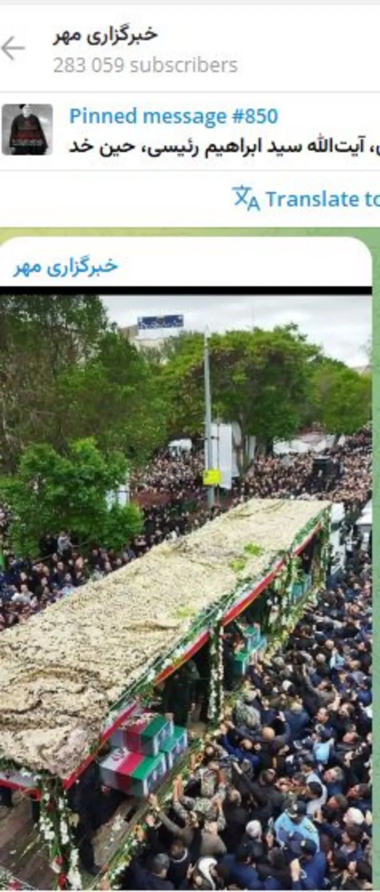 Тело почившего Эбрахима Раиси провозят через весь город. Многие снимают происходящее на телефоны.
