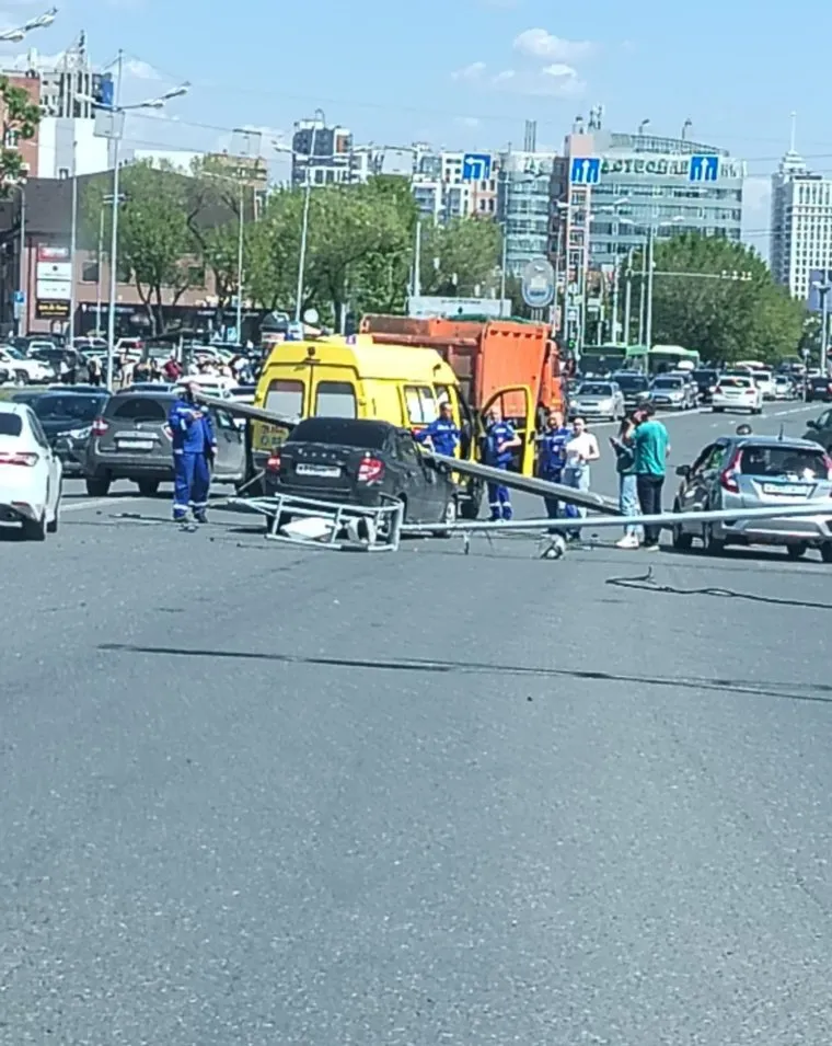 В центре Тюмени на проезжую часть рухнул столб. Фото