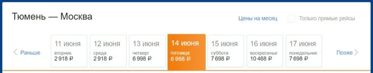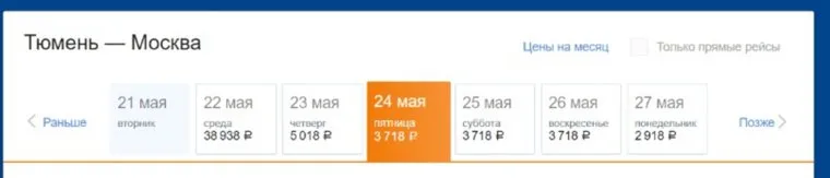 «С 24 мая по 12 июня из Тюмени в Москву можно улететь за 2 318-3 718 рублей. Рейсы по такой цене выполняет авиакомпания „Аэрофлот“», — указано на сайте. Цена зависит от дня вылета. Стоимость билета обратного направления будет по той же цене.