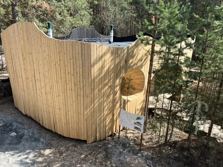 «„Гнездо кукушки“ — это уникальное архитектурное сооружение, аналогов которому нет ни в Свердловской области, ни на Урале. Дом представляет собой строение площадью 40 квадратных метров, которое может с комфортом вместить 2-4 человека», — делятся в «Парке сказов». Внутрь дома на дереве можно будет попасть по лестнице, сооружение находится на уровне семь метров и напоминает жилище птиц.