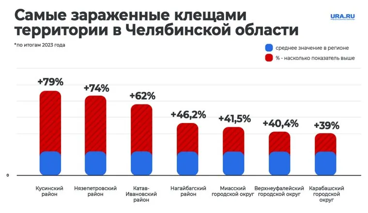«По итогам 2023 года значительно выше показатель по укусам клещей в Кусинском, Нязепетровском, Катав-Ивановском, Нагайбагском районах, а также в Миасском, Верхнеуфалейском и Карабашском городских округах», — сообщила URA.RU Лучинина. С начала нового сезона в регионе от укусов клещей пострадало 3962 человека.