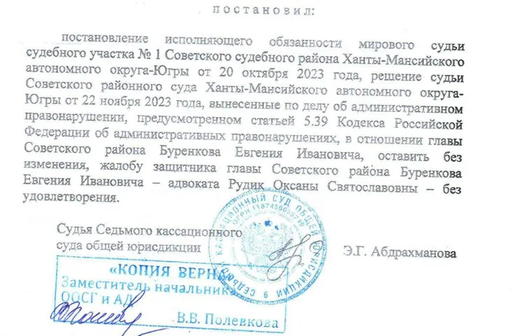 Глава Советского района ХМАО Евгений Буренков решил пройти все инстанции в судебном споре с журналистами. Отказавшись давать интервью местному порталу «2города», он попал в бесконечные тяжбы, пытаясь оспорить решение мирового судьи о штрафе за формальный ответ. Проиграв кассацию в Челябинске, глава района сообщил URA.RU, что намерен обратиться в Верховный суд РФ.