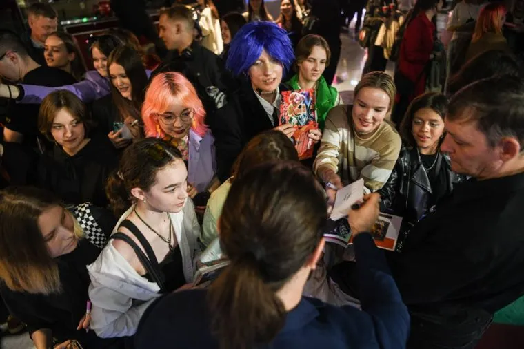 Перед сеансом съемочная группа пообщалась с фанатами и раздала автографы