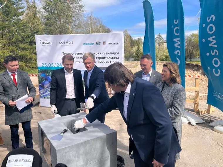«В Тюменской области приступили к реализации инвестпроекта по строительству гостиничного комплекса в центре Тобольска. Состоялась торжественная закладка „капсулы времени“ в основание будущей гостиницы», — передает корреспондент URA.RU. На территории отеля также будет располагаться термальный комплекс Cosmos Tobolsk Hotel.
