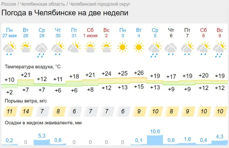 В Челябинск к 1 июня вернется теплая погода, столбики термометров к началу лета поднимутся до 21-26 градусов тепла. Об этом сообщили на сайте «Гисметео».