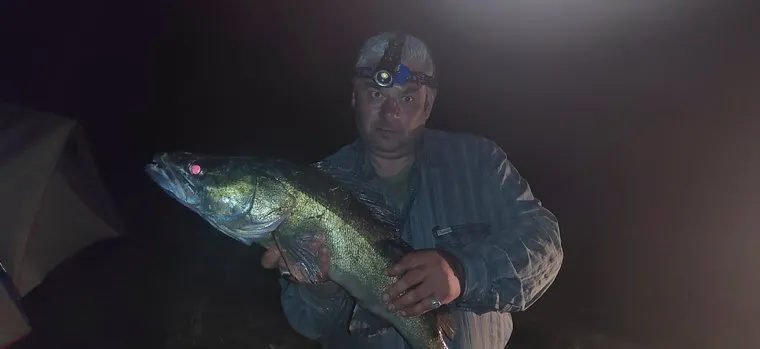 Рыбак Сергей Савченко выловил огромного судака в районе сургутской ГРЭС