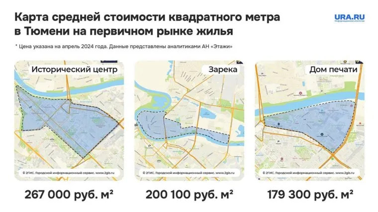 Уточняется, что дороже всего жилье в исторической части города. За квадратный метр в новостройках в центре Тюмени придется заплатить в среднем 267 027 рублей. Следом идет район Зареки — 200 121 рубль. Чуть дешевле новостройки в районе драмтеатра и Дома печати — 183 619 рублей и 179 301 рубль соответственно.