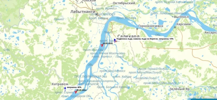 Фото: скрин с интерактивной карты ледовой обстановки - https://map.yanao.ru/eks/pavodki