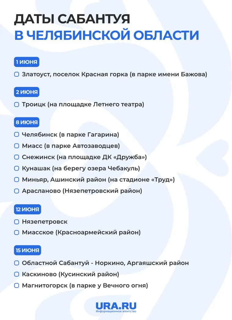 В Челябинской области, на главном Сабантуе, которой состоится 15 июня, выступят артисты из Башкортостана. Всего в регионе запланировано более 20 праздников, посвященных окончанию весенних полевых работ. О том, где будут дарить живого барана, ловить петуха, варить бузу, выставят юрты и покажут свадебные обряды — рассказывает URA.RU
