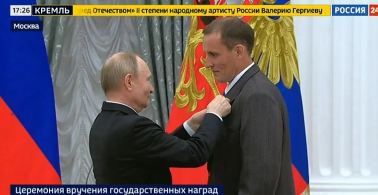 «Орденом Дружбы награждается Пряхин Игорь — токарь производственного объединения „Маяк“», — объявили на церемонии. Глава государства вручил мужчине награду и пожал руку.