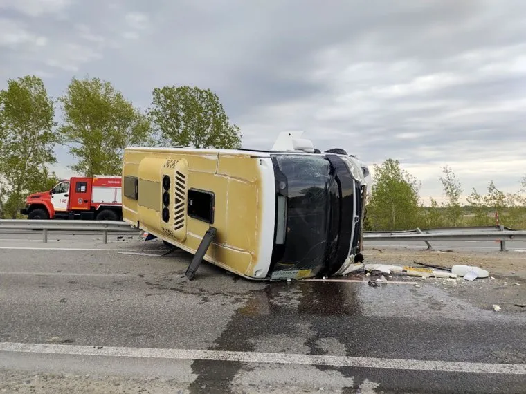 На «трассе смерти» из Тюмени в ХМАО опрокинулся пассажирский автобус. Фото