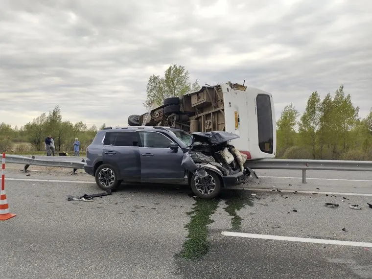 «Пассажирский автобус „ПАЗ“ и HAVAL столкнулись сегодня на 128-м километре автодороги Тюмень-Ханты-Мансийск, от удара автобус опрокинулся через разделительное ограждение. Предварительно, водитель автомобиля из Тарко-Сале нарушил правила дистанции», — рассказали в ГАИ.