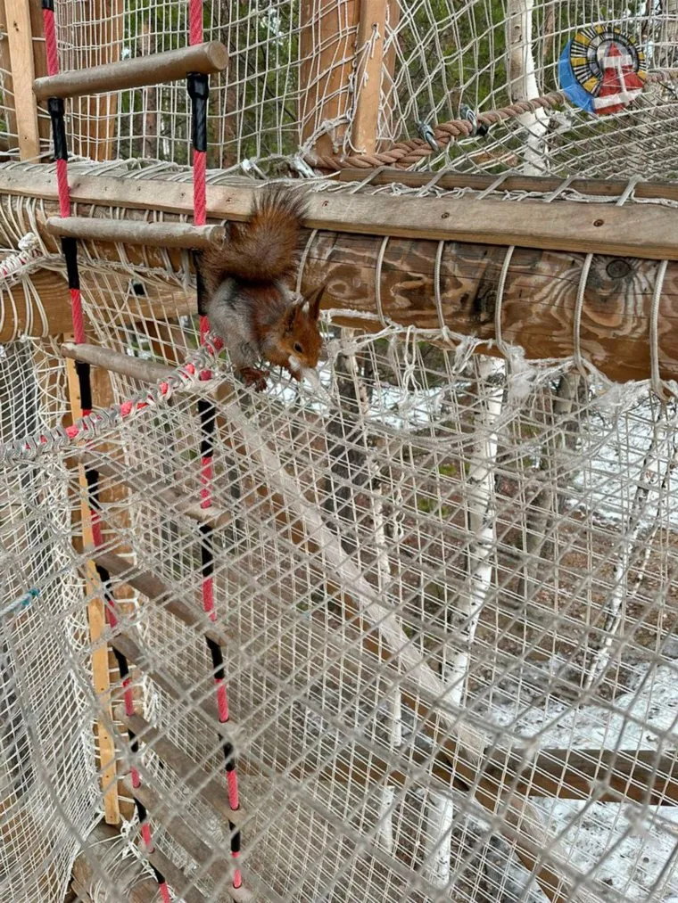 Вандалами, повредившими сетку веревочного городка, оказались белки