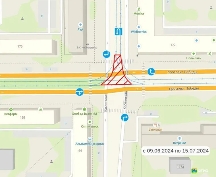 «В Челябинске с 22 часов 6 июня до 15 июля закрывается движение по Каслинской в прямом направлении, движение по проспекту Победы — прямо и направо. С 22 часов 9 июня до 15 июля дополнительно будет закрыт проезд по проспекту Победы в прямом направлении от Кирова в сторону Свердловского проспекта, движение транспортных средств будет организованно через разворот напротив дома Каслинская, 42», — сообщили в пресс-службе мэрии.