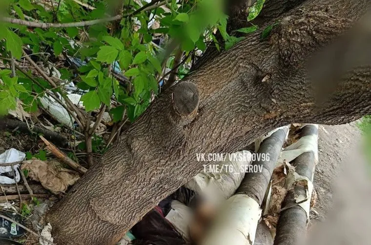 «Около заброшенного здания за 20-й школой лежит труп уже два дня, дети бегают смотрят, уже мухи летают», — передает сообщество «ВК, Серов». Отмечается, что подлинность фото установить не удалось, однако у заброшенного здания за школой №20 действительно есть похожая теплотрасса.