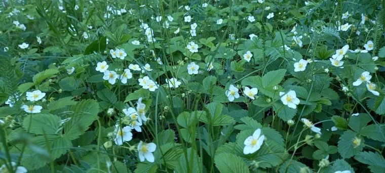Челябинцы рассказали про супер обильное цветение в лесу земляники и клубники. Фото