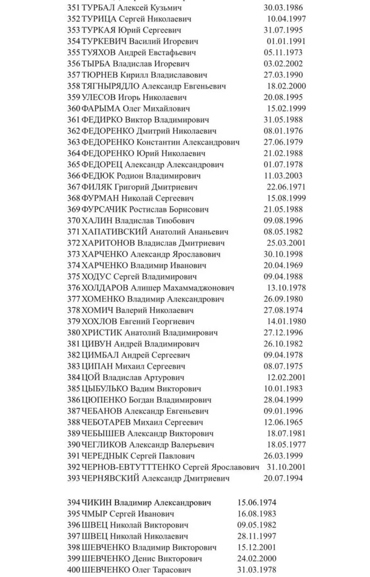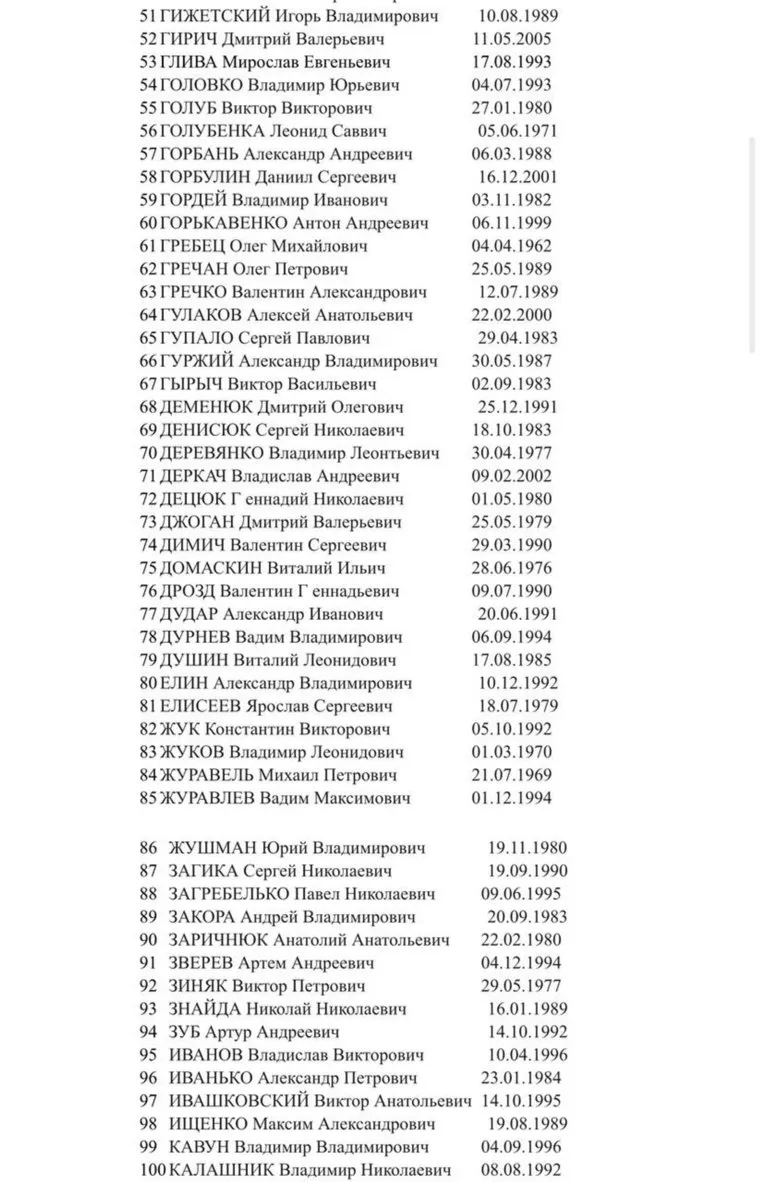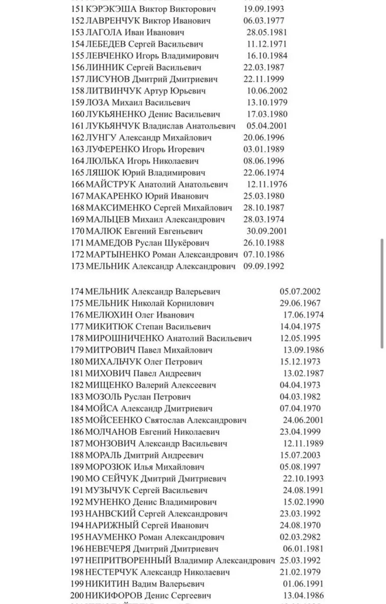 Москалькова опубликовала список украинских пленных, готовых вернуться домой. Скрин