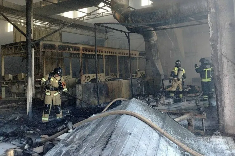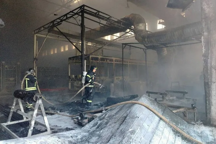 МЧС показало фото пожара на челябинском заводе по производству троллейбусов