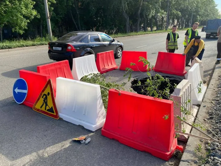Провал, образовавшийся 17 июня на проезжей части шоссе Металлургов в Челябинске, огородили. Там начались восстановительные работы, сообщили в мэрии города.