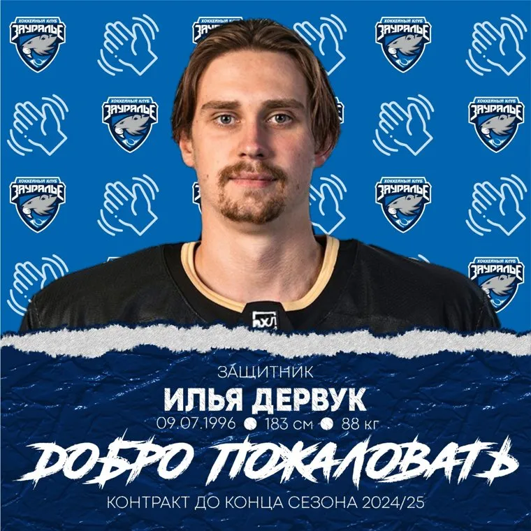 «Илья Дервук имеет значительный опыт выступлений в ВХЛ, а также играл в КХЛ за 'Авангард', где провел 76 матчей», — информирует пресс-служба ХК «Зауралье» в своих соцсетях. Контракт с 27-летним защитником заключен на один год.