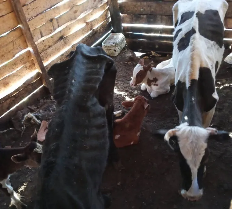 Изначально тревогу из-за жуткого состояния животных забили жители деревни. Они опубликовали в социальных сетях фотографию истощенных коров.