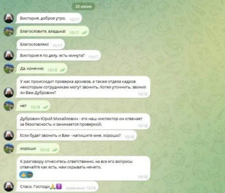 «Ни митрополит Алексий, ни духовенство никогда не звонит и не пишет никому с просьбой ответить на звонки неизвестных людей. Не просит сообщить пароли от своих банковских карт. Если вам поступило подобное сообщение, не вступайте в переписку и блокируйте эти контакты», — заявили в пресс-службе.