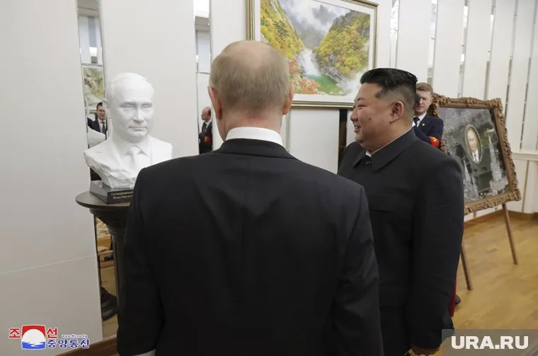 Ким Чен Ын вручил Владимиру Путину подарок в виде бюста и уникальной картины ручной работы