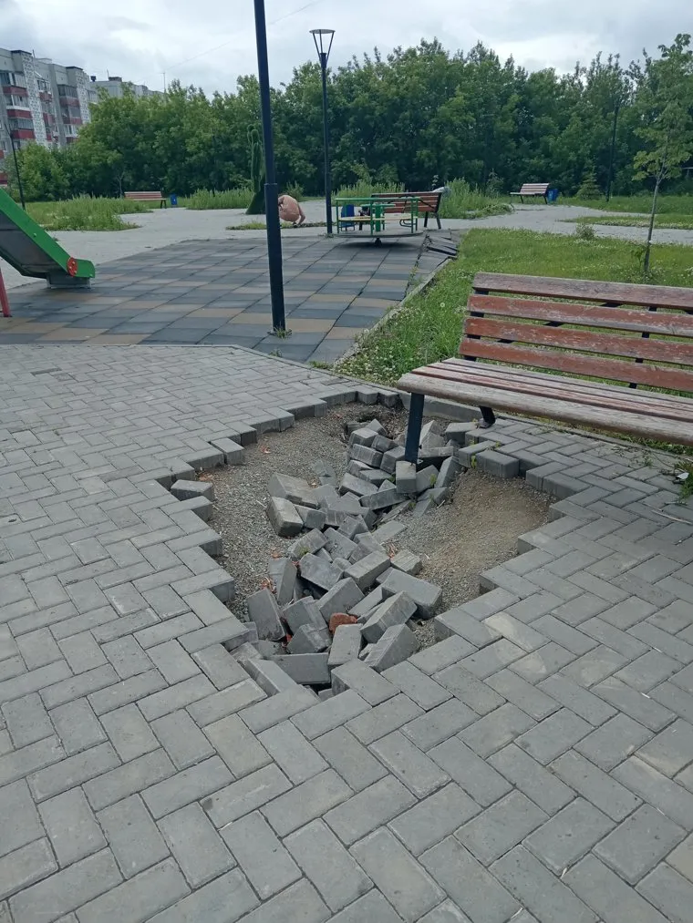 Жители поселка Метлино возле Озерска Челябинской области потребовали устранить провалы грунта в местном сквере, которые привели к обрушению каменной и резиновой плитки. Об этом рассказала URA.RU Светлана Г. В администрации округа отметили, что покрытие будет восстановлено.