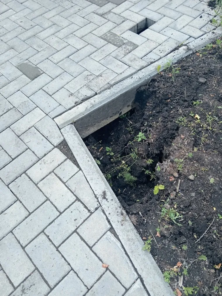 «Грунт просел, в глубокие ямы уползает плитка. Здесь играют дети, это очень опасно», — сообщила URA.RU Светлана Г.