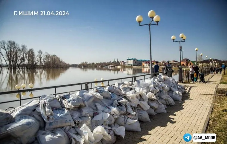 Губернатор Тюменской области Александр Моор поделился кадрами, как уходит вода из города Ишим, который затопило из-за паводка. Фото глава региона выложил в своем telegram-канале.