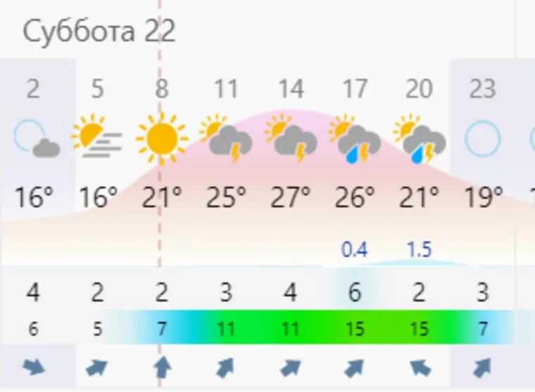 Как указано на портале Gismeteo, температура воздуха в Кургане поднимется до 27 градусов. Согласно карте осадков Windy, непогода должна прийти в регион к 11:00.