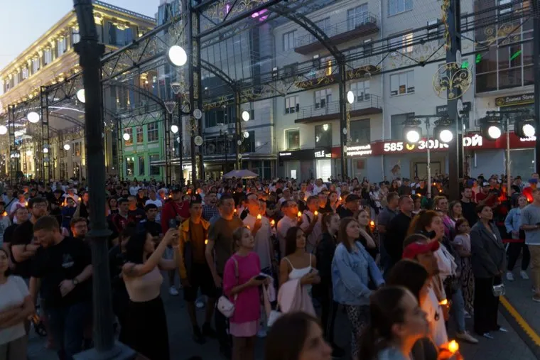 В Екатеринбурге 21 июня в 22:30 под медиаэкраном на улице Вайнера, подаренным городу компанией «Сима-ленд», устроили акцию памяти героев Великой Отечественной войны. 22 июня — День памяти и скорби, дата начала войны. На акцию собрались сотни человек, рассказали URA.RU в «Сима-ленде».