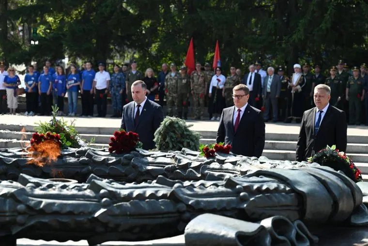 Губернатор Текслер в День скорби возложил цветы к Вечному огню в Челябинске. Фото