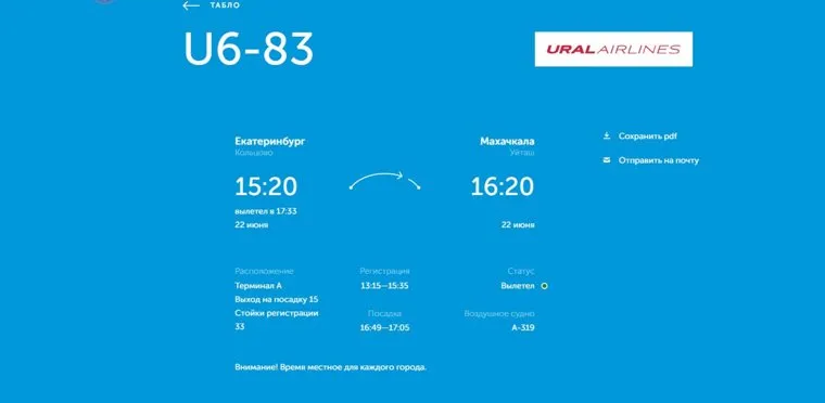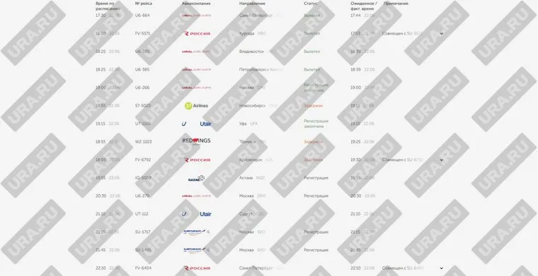 Фото: Фото: онлайн-табло аэропорта Кольцово (https://svx.aero/board/dep-u6-12995860/)