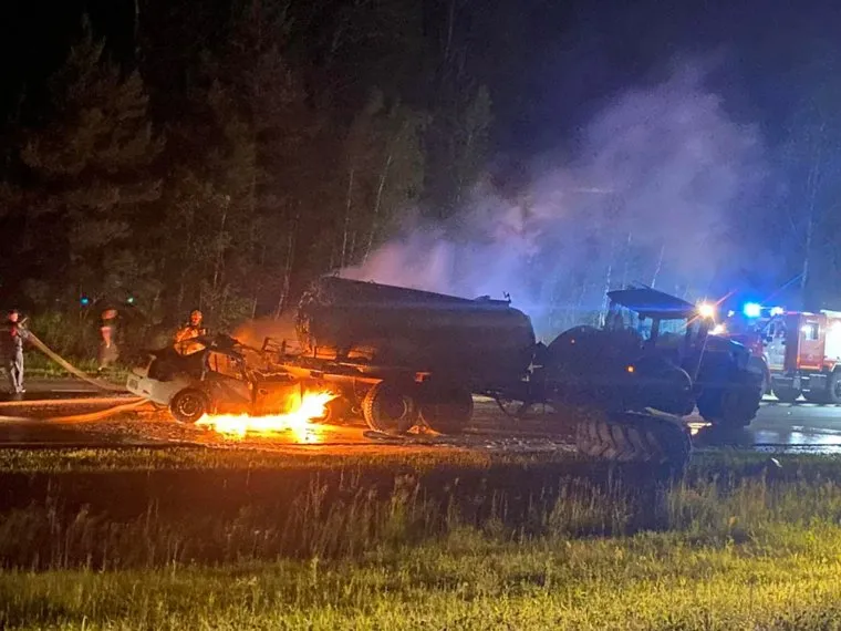 В Тюменской области водитель погиб, въехав в трактор. Фото