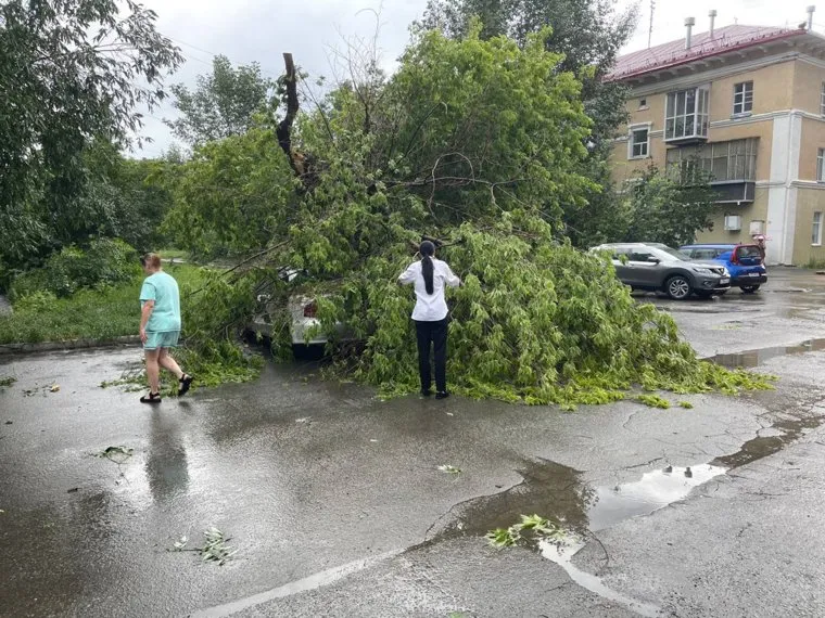 16:41 Деревья повалились на машины, которые стоят на главной площади Кургана. Владелец автомобиля позвонил на номер 112, его заявку приняли, уточнив, что придется ждать.
