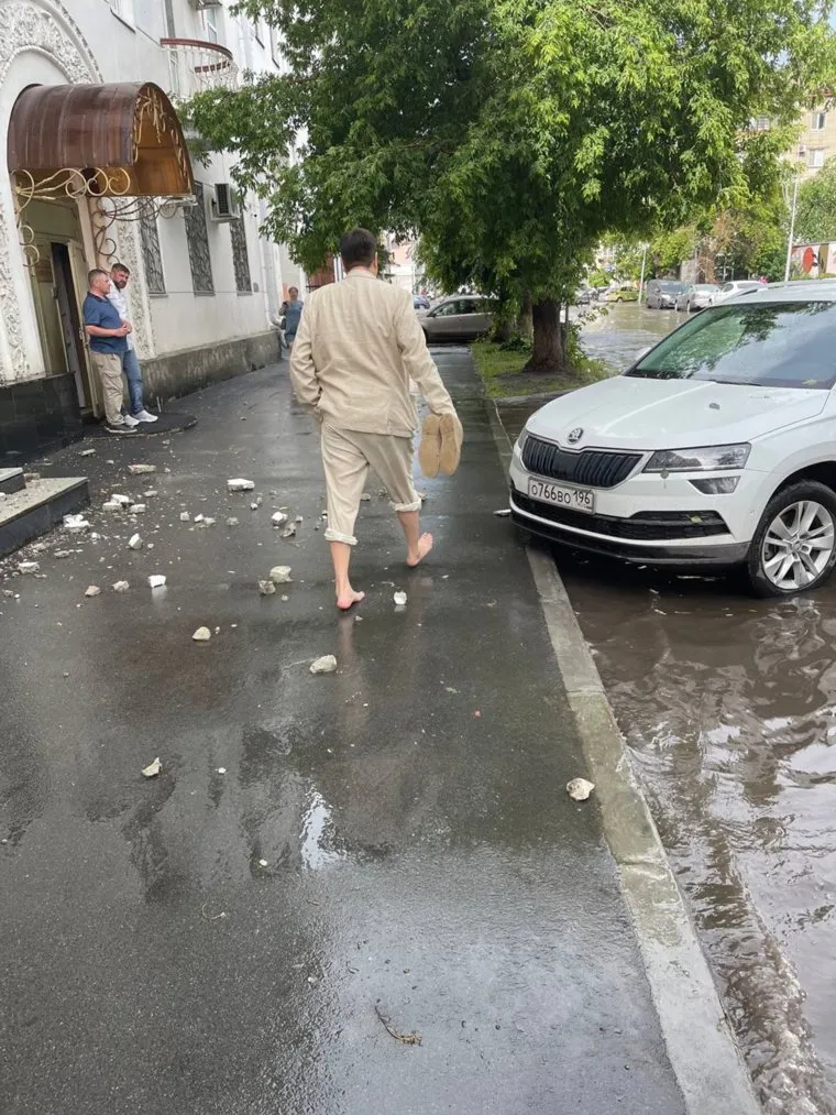16:15 В горсаду люди идут, пересекая улицу по колено в воде. Журналист URA.RU Екатерина Сычкова сама оказалась в затопленном районе города. «Все автомобили в воде. Стоят. Люди, кто босяком, кто в обуви, продолжают идти. Дождь прекратил лить, но вода все еще не ушла в ливневку», — передает корреспондент.