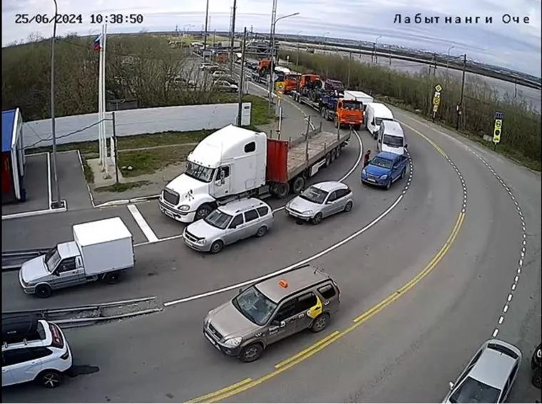 Очередь из машин со стороны города Лабытнанги