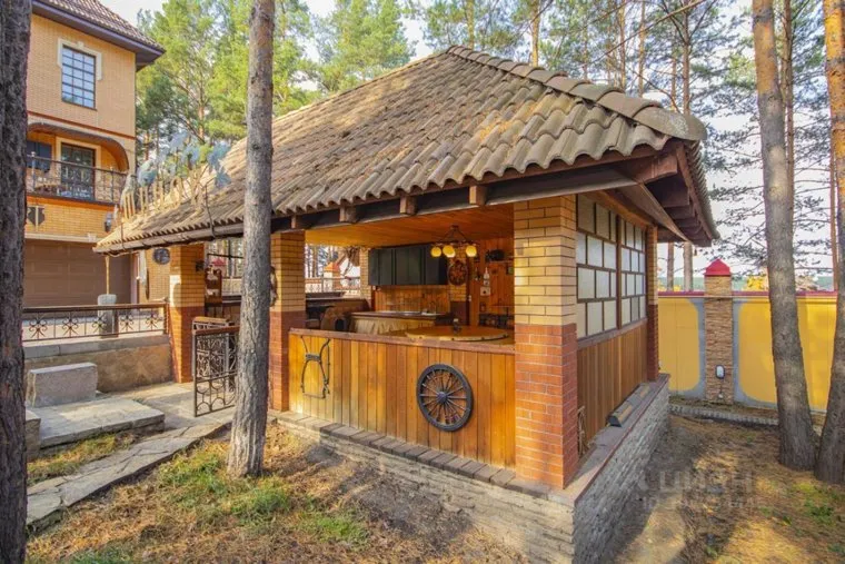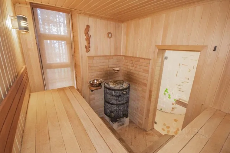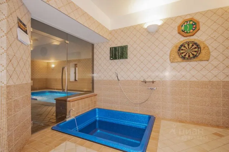Новому владельцу гарантируют комфортный отдых в личном пространстве. Внутри коттеджа оборудован большой бассейн, сауна, баня, пять санузлов. Семейные вечера рекомендуют проводить на барбекю в гриль-домике.